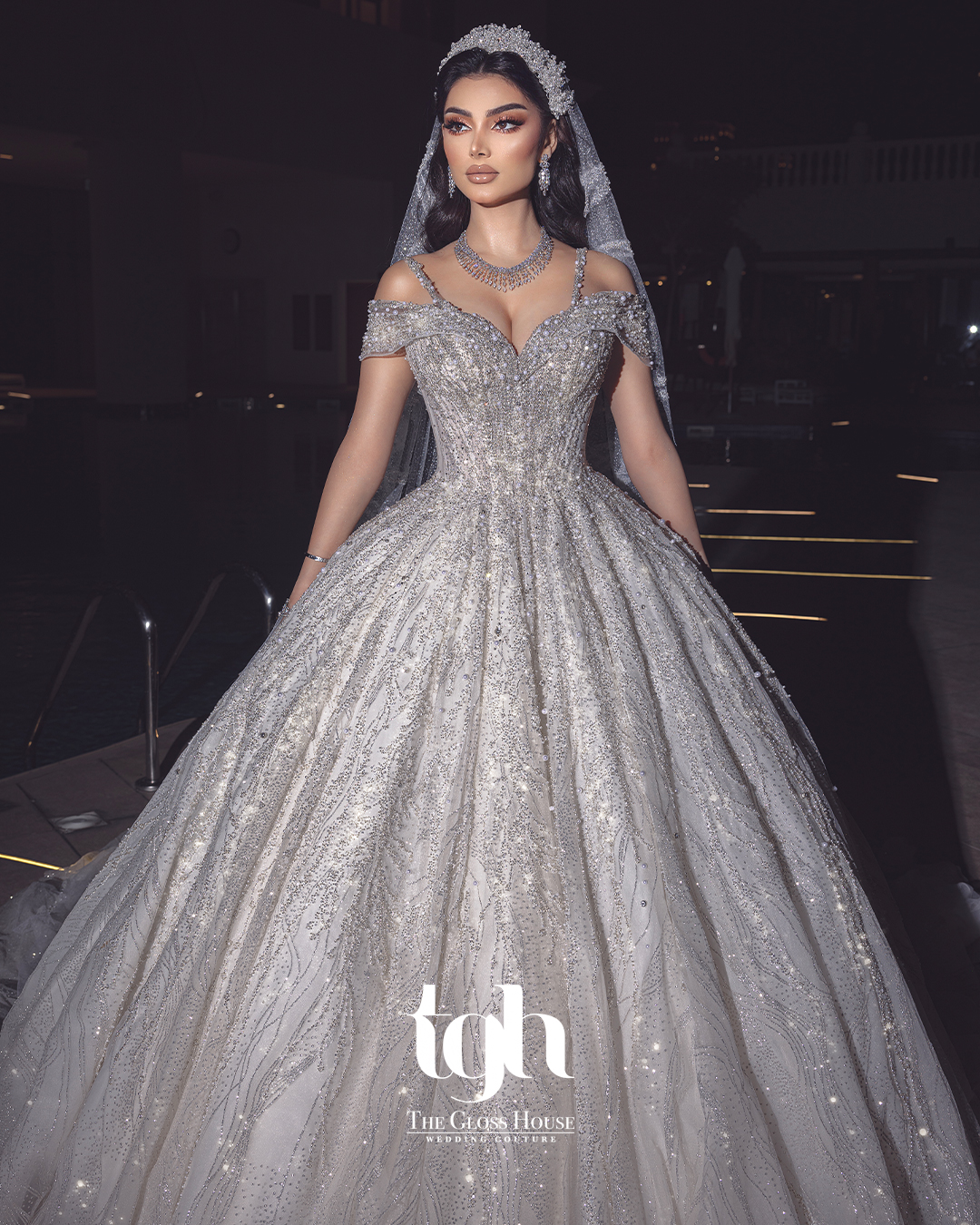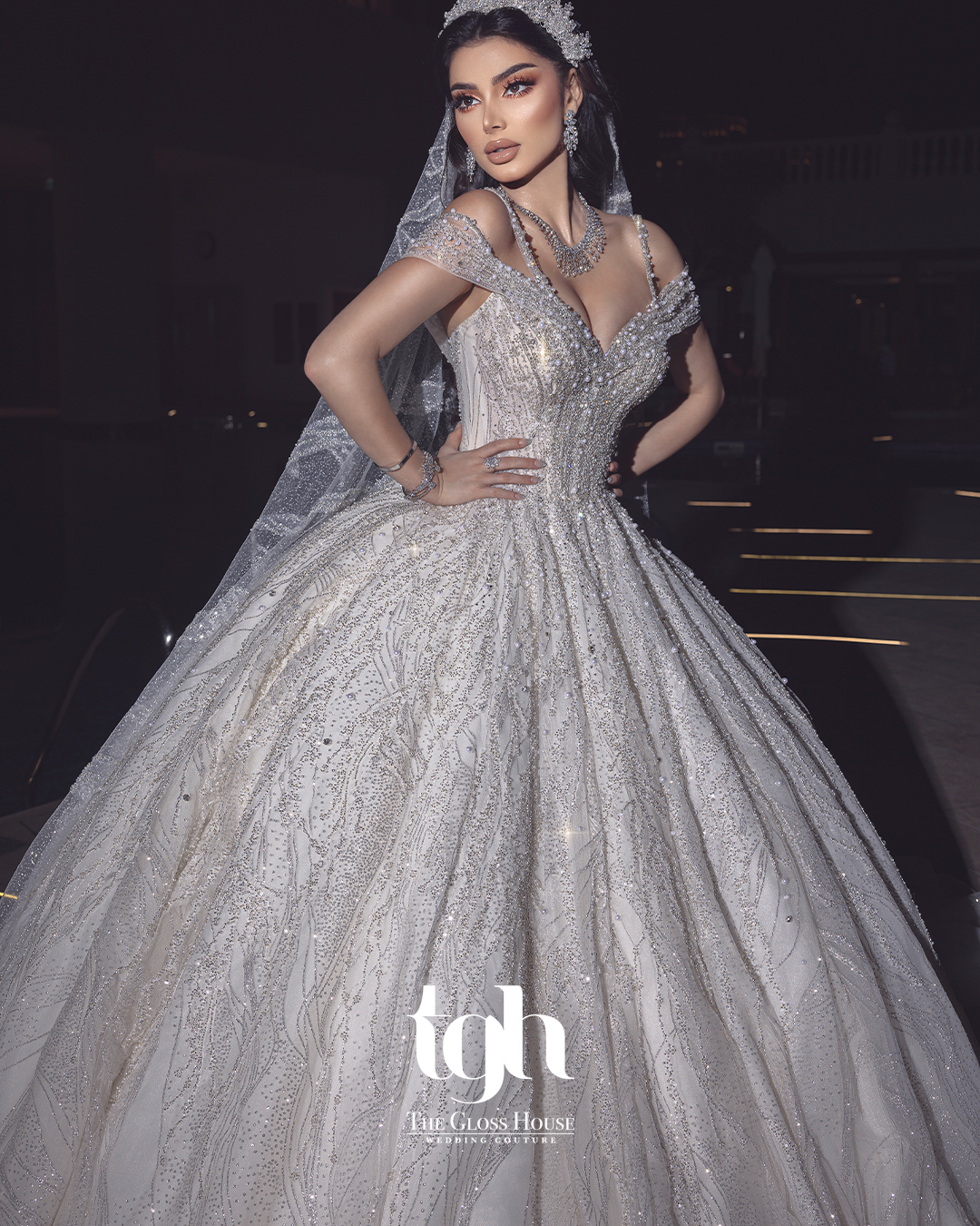 Elegant and enchanting, Sharazad tells a story of timeless beauty and refined luxury. This classic luxury A-line gown is crafted with full handwork beading and shimmering glitter tulle, creating a soft, radiant glow that captures every gaze. The graceful silhouette and 1.5-meter train flow effortlessly, blending sophistication with fairytale charm. Sharazad is perfect for the bride who dreams of elegance wrapped in sparkle and grace.